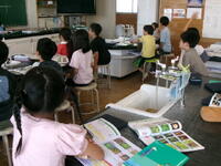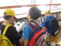 藤原図書館では、0から9番の分類法や本の秘密を詳しく教えて頂きました。質問タイムには、図書館の利用の仕方や本が図書館に来るまでのしくみなど、知りたいことを意欲的に質問していました。「学校にはない本がたくさんある!」と、目を輝かせながら本を借りました。