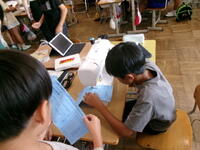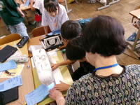 各グループの活動では、8つのグループに分かれボール投げ、輪投げ、宝探しゲームなど様々な活動をしました。タブレットを使って作ったルールを見せながら説明をしたり、優しい言葉掛けをしたりする姿が見られ、成長を感じました。