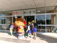 今朝は日光アイスバックスの選手とマスコットのしかっちが来ました。