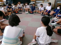 業間、56年生の中から希望者が集まりました。運動会のダンスを考えたい人、団体種目を考えたい人が集まり、これから話し合います。