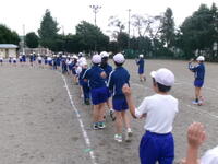 4年体育、運動会選抜リレーの選手を決めるためにタイムを計ります。