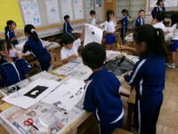 4年図工、版画。この時期の図工は版画がどの学年も計画にあります。