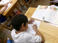 2年書写、漢字を書くとき画の長さに気を付けて練習します。