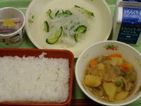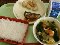 室内の調理員さんに聞こえるようお礼を言います。「〇年〇組です。ごちそうさまでした!」