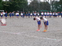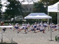 中学年、団体競技、応援綱引き。 低学年、徒競走。