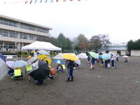 今朝は少し晴れ間が見えます。閉会式の練習です。