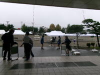 6年生は、残って前日準備です。雨が止んだので、外に運べるものを運んでいます。