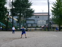 6年体育、ソフトボール。ボールの扱いがだんだん上手になっています。