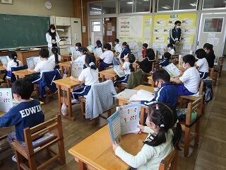 6月5日、朝の学習の時間に「読み聞かせ」が行われました。どのクラスの児童も真剣に聞いていました。特に、低学年では体を乗り出して聞いたり、歓声を上げながら聞いたりする児童も見られました。今後は1週間おきのペースで読み聞かせをしていただく予定です。児童はこの読み聞かせを楽しみにしています。これからもお世話になりますが、どうぞよろしくお願いいたします。
