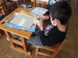 玉結び、玉どめはとても難しそうでしたが、ボランティア先生に教えてもらいながら、あきらめずに練習していました。上手にできるようになるまで、練習を重ねていきたいと思います。