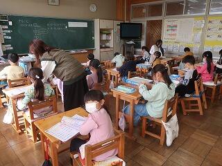1年2組の国語「みみずのたいそう」
