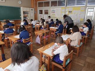 一年生も3学期になると覚える漢字が急に増えてきます。読み方や書き順、使い方を確認して練習しました。御家庭でもどんな漢字を学習したのか聞いてみてください。