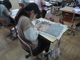 学習・運動・生活の3学期のめあてを考えました。終わったら木版画の仕上げを行います。