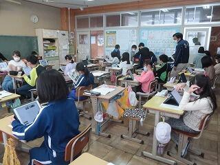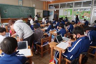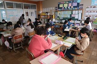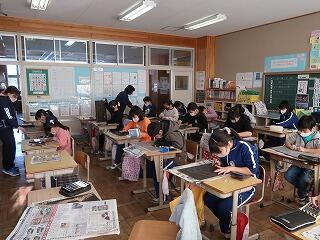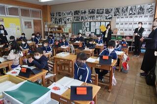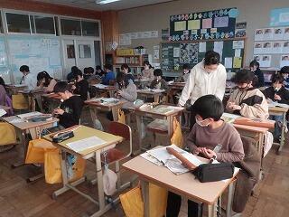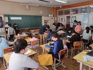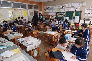 担任の先生は20年目研修のため不在です。補教の先生方が入れ替わりで6年生の学習支援を行いました。6年歴史学習の復習に取り組んでいます。終わったら卒業アルバムの写真を選んだり、まとめの学習をしたりします。