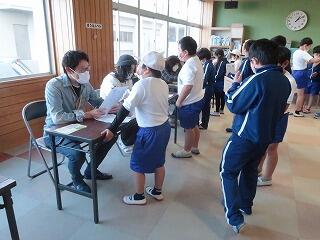 6月8日、歯科検診がありました。学校歯科医の先生を中心に3名の先生に診ていただきました。話をせずに整列して待つ子や足音がしないように歩こうとする子などが見られ、落ち着いたようすで検診を受けることができました。歯科医の先生方からは「低学年の子はよく歯磨きできているようですね。」というお話をいただきました。日頃の御家庭での歯磨きの習慣化など、ありがとうございます。