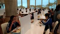 修学旅行1日目の見学が終了し夕食の時間になりました。暑さで汗をかきながらも元気に活動することができました。夕食前の健康チェックでも全員が体調良好でした。「自分も楽しく。友達も楽しく。」そんな修学旅行にできるようみんなで力を合わせています。