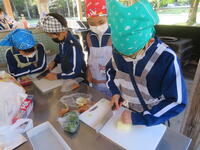 次に、日光にあるレストラン「ジルエット」のシェフを講師にお招きし、「夢」をテーマ講話をしていただきました。子供たちはたくさんメモを取りながら真剣に話を聞いていました。夢を持ち続けることの大切さや小さなことの積み重ねで夢が叶っていくことなどを教えていただきました。また、自分が夢を叶えることで、他の誰かの夢も叶っているというお話もありました。子供たちは、自分自身について、そして夢について考えることのできる素敵な時間だったと話していました。子供たちは一人一人、夢をもっていて、シェフも感心していました。