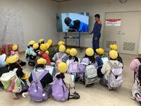 3年生総合「地域のじまんをしょうかいしよう!」の一環として、3年生児童から1・2年生に地域にある味自慢の食堂について発表していました。(1階オープンスペース)