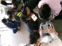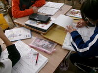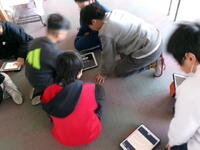 3年総合、見学した内容をまとめて発表の練習をグループごとにします。