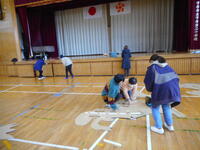 班長を中心にどんな遊びをするかを決め、場所を調整し、用具を準備しました。