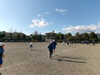 5年体育、準備運動の前に少し長めにジョギングをします。