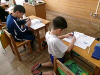 今日は、6年生がそれに向けた接続のテストと、実際に問題を解いてみました。