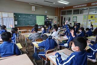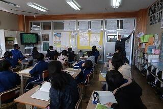 5年生までの理科の学習の流れをふり返り、これから学ぶ6年生の理科の内容を確認しました。理科専科の渡辺聡先生が担当します。