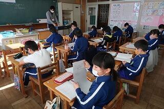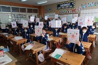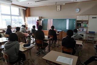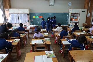 続いて各教室で小さな声で校歌を歌いました。