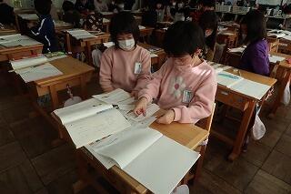 単元のまとめのテストに取り組んでいます。