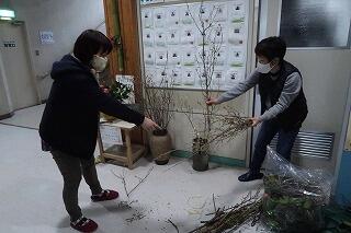 午前中、生け花ボランティアさん2名が学校に来てくださいました。新学期に登校してきた児童に気持ちよくスタートが切れるように玄関と昇降口に色鮮やかなヤマブキの黄色い花や濃いピンク色の八重桜などを生けてくださいました。