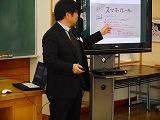 進行は、英語科主任の大室先生です。大室先生が、過日総合教育センターの研修で学んだことを、各教員が児童役になり体験しました。