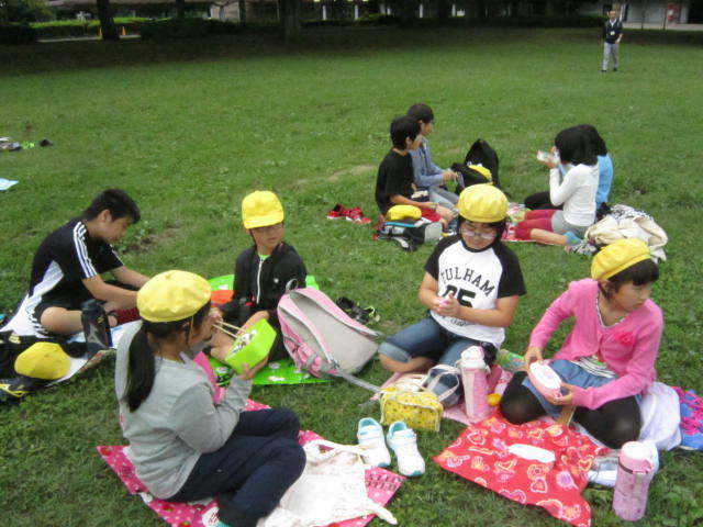 広い芝生の上でグループに分かれ、持ってきたお弁当に舌鼓を打ちました。
