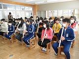 琴の授業では、みんなで「さくらさくら」を演奏し、尺八では音出しに挑戦しました。邦楽のよさはもちろんのこと、一つの道を究めようとする方々の取り組みは、大変参考になりました。お忙しい中お世話になりました。