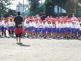昨夜来の雨は上がりましたが、空は多くの雲に覆われはっきりしない天気となりました。このような中、全体練習は開閉会式の仕上げをしました。吹奏楽部の演奏に合わせて入場する姿からは、真剣な気持ちが伝わってきました。代表児童の態度はもちろんのこと、全員がよい開閉会式にしようと真剣に練習できました。最後に各学年ごとに分かれ、姿勢や整列など細かな点の指導を受け、全体練習が終了しました。当日は練習の成果が十分に発揮できることと、暑過ぎない天気のもと実施できることを併せて願っています。