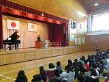 邦楽のよさを知り興味関心を高めるために、5年生を対象に邦楽スクールコンサートを実施しました。学級をふたつのグループに分け、琴と尺八の演奏を聴き実際に体験もしました。指導してくださったのは、知久先生はじめ3名の方々にお世話になりました。
