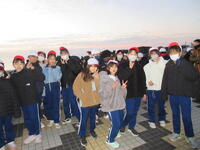2日目、朝の海岸散歩。メイン広場からみんなで日の出を見ました。なかなか見ることのできない素敵な景色を見ながら幸せな時間を共有することができました。