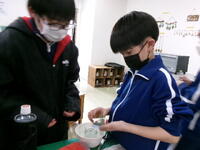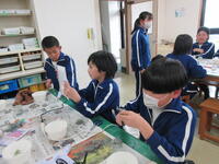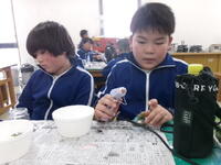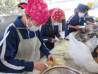 6年家庭科、調理実習です。一食分の栄養バランスを考えて献立を考えました。