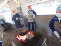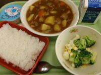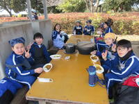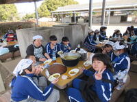朝食後、ポークカレーを作りました。班で分担しながら手際よく調理していました。全部の班が完食するほど、おいしいカレーができました。後片付けも協力して行い、時間よりはやく活動を終えることができました。