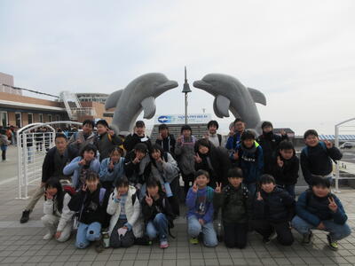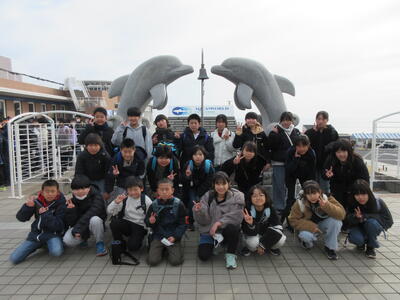 3日目、ルームチェックをスムーズに終え、アクアワールドに出発!班で海の生き物をみたり、イルカ・アシカショーを楽しんだりしました。