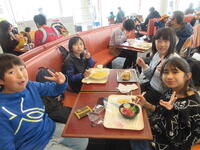 昼食はフードコートでそれぞれ自分の食べたいものを注文して、おいしく食べました。また、お金の使い方に気を付けながら、お土産を選びました。