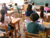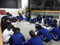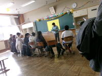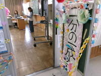 昼休み、明日の新入生保護者会のために、図工室で会場づくりを6年生が手伝ってくれています。