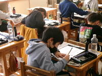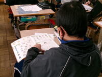 学力テストを前に、自分が伸ばしたいところを考えながら学習します。