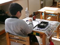 4年国語、はじめに漢字のミニテストをします。一生懸命思い出しています。