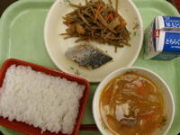 今日は、八王子市。焼き魚に桑の葉粉末を加えたソースがついています。