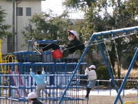 寒いですがよい天気です。業間は外に出てたくさんの人が遊びます。