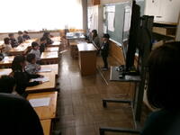 6年英語、聞き取りのテストです。6年生は他より早く学年末のテストをするので