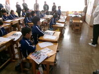 授業参観です。1年生活、家族が笑顔になったことを発表します。