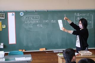 本校の卒業生で教育自習に来ていた手塚先生が今日の実習でお別れです。お昼の放送と高学年下校で挨拶を頂きました。今年の教員採用試験に挑戦するそうです。ぜひ頑張って教員になってほしいと思います。頑張れ手塚先生!