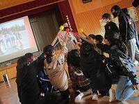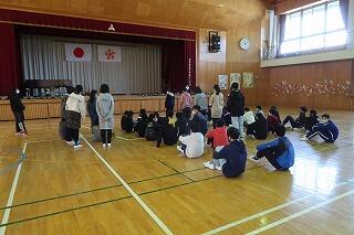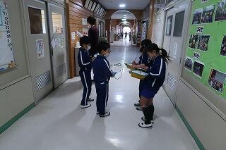 運営委員会の児童は、明日の縦割り班の交流活動の進行のリハーサルに取り組んでいました。