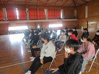 オリエンテーションで、施設の方に元気にあいさつをしました。その後で、施設の使い方や注意事項などを聞きました。